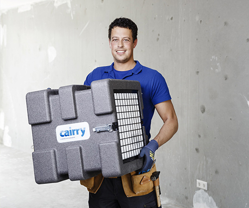 Cairry is the solution for dust-free construction and renovation work. This portable air cleaner is compact, lightweight, low-noise and therefore the perfect partner for your next construction project!